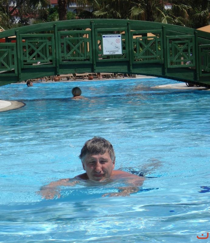Бассейн с зеленым мостиком