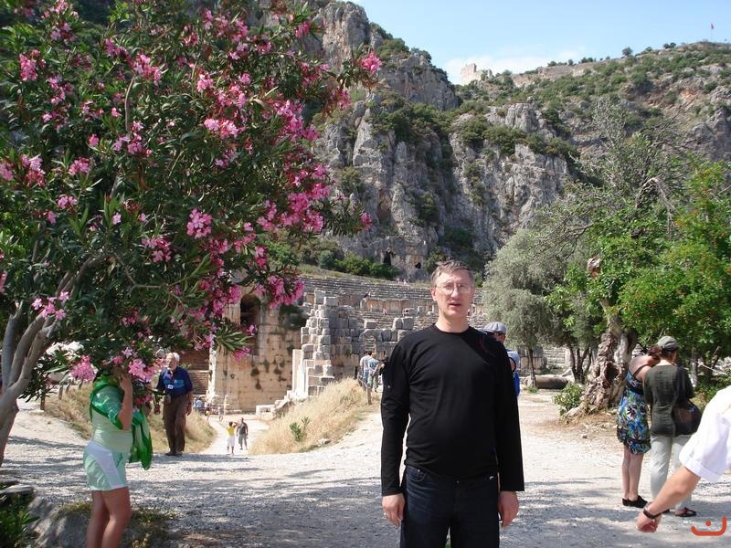 Розовые цветы и серые гробницы